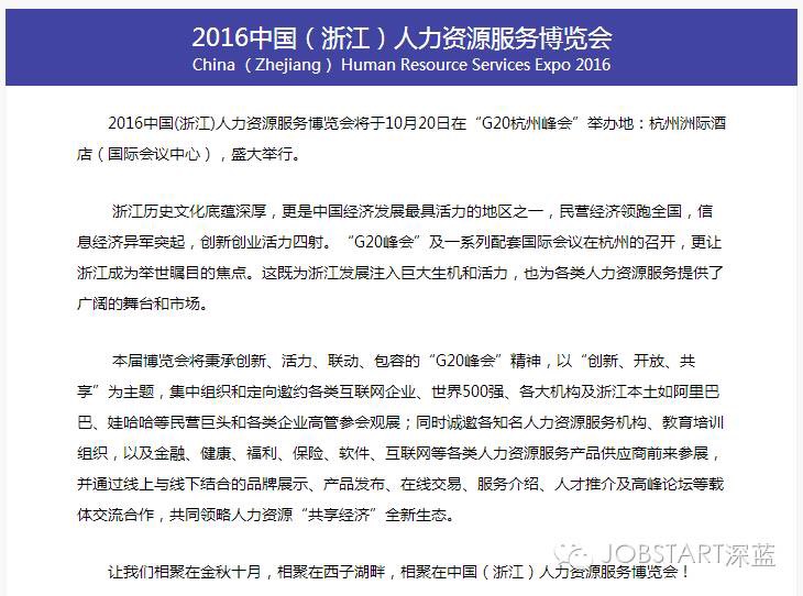 G20峰會的成功舉辦,讓浙江再次成為舉世矚目的焦點。這既為浙江發(fā)展注入巨大生機和活力,也為各類人力資源服務(wù)提供了廣闊的舞臺和市場。
