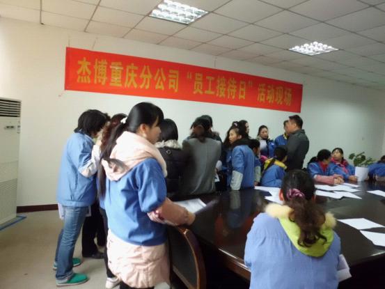 為更好的傾聽(tīng)員工心聲,切實(shí)幫助員工解決工作上存在的困惑、生活上遇到的問(wèn)題,本著“關(guān)心工作、關(guān)心生活、關(guān)心成長(zhǎng)”的杰博服務(wù)文化,“為客戶(hù)服務(wù)的心,永無(wú)止境;為員工服務(wù)的心,永無(wú)止境”的服務(wù)宗旨, 致力于成為中國(guó)人力資源服務(wù)行業(yè)“員工服務(wù)效率”和“員工滿(mǎn)意度”最高的人力資源服務(wù)機(jī)構(gòu)的服務(wù)目標(biāo),2011年12月23日我司聯(lián)合客戶(hù)單位舉辦了杰博重慶分公司“員工接待日”活動(dòng)。